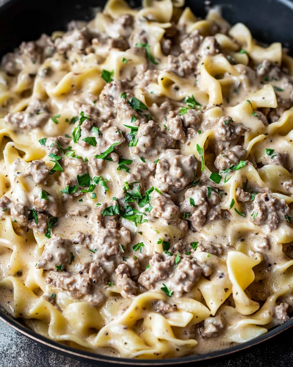 Serve your Ground Beef Stroganoff hot, garnished with freshly chopped parsley for a pop of color and flavor.