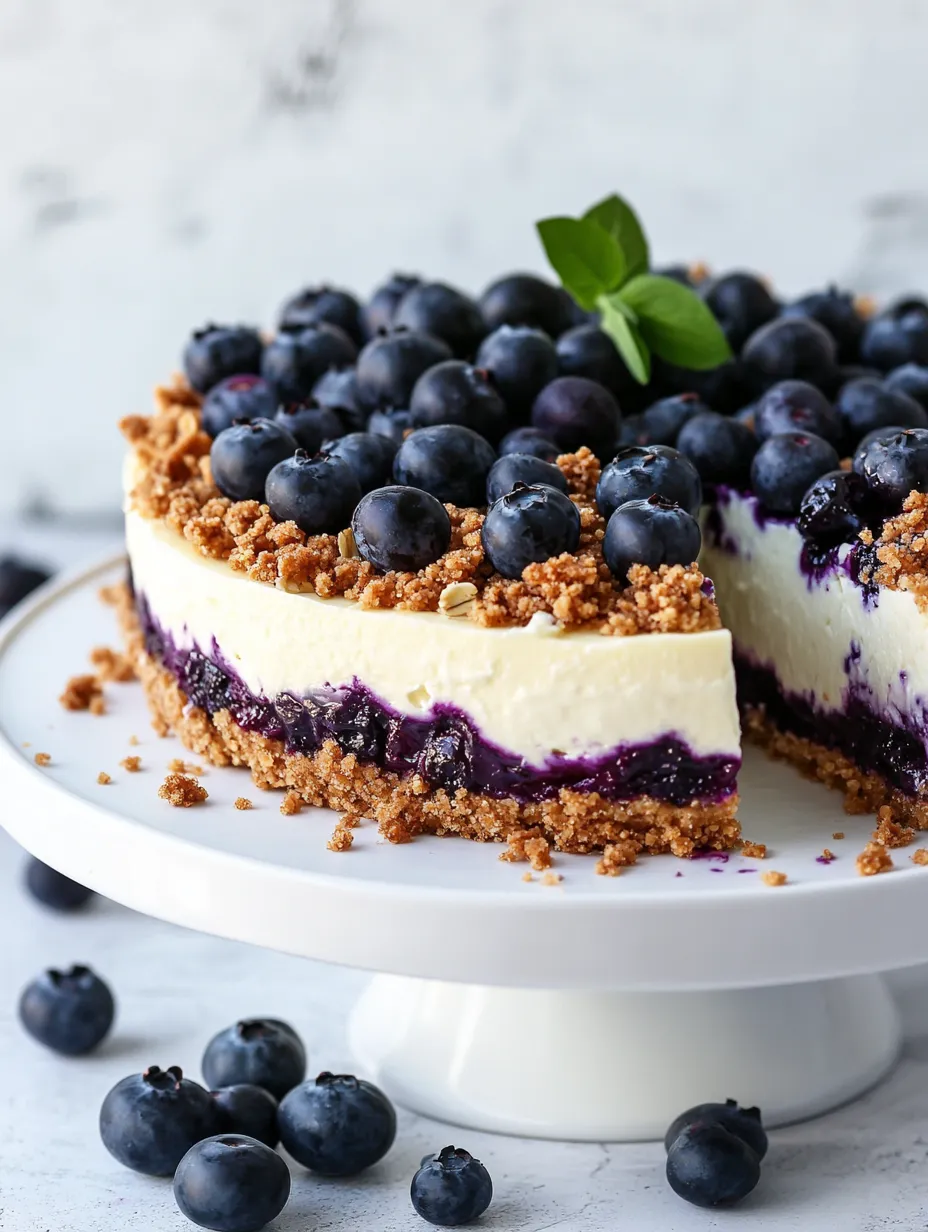 In summary, this Blueberry Crumble Cheesecake Recipe combines the rich creaminess of cheesecake with the delightful crunch of a crumble topping, making it a perfect dessert for any occasion. With a few simple ingredients and easy-to-follow steps, you can create a show-stopping dessert that will impress everyone.