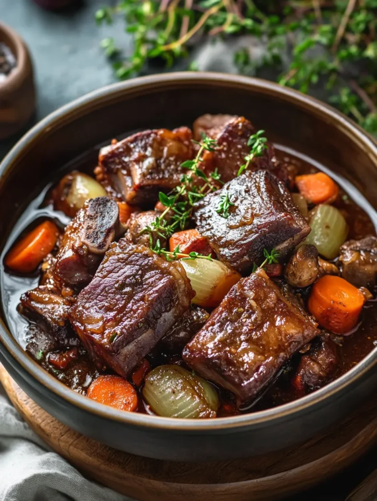 - Red Wine (1 cup): A full-bodied wine enhances the dish’s richness.