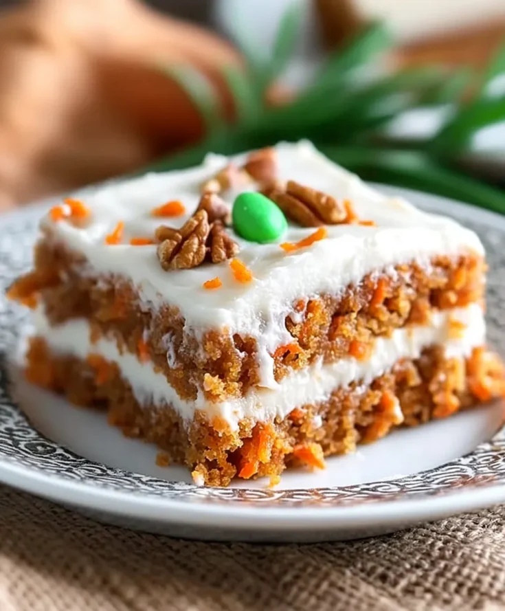 In summary, these carrot cake bars with cream cheese frosting are not only easy to make but also a delightful treat for any occasion. With their moist texture and rich flavors, they’re sure to impress. Try this recipe today and don’t forget to share your thoughts in the comments below! Subscribe for more delicious recipes and updates!