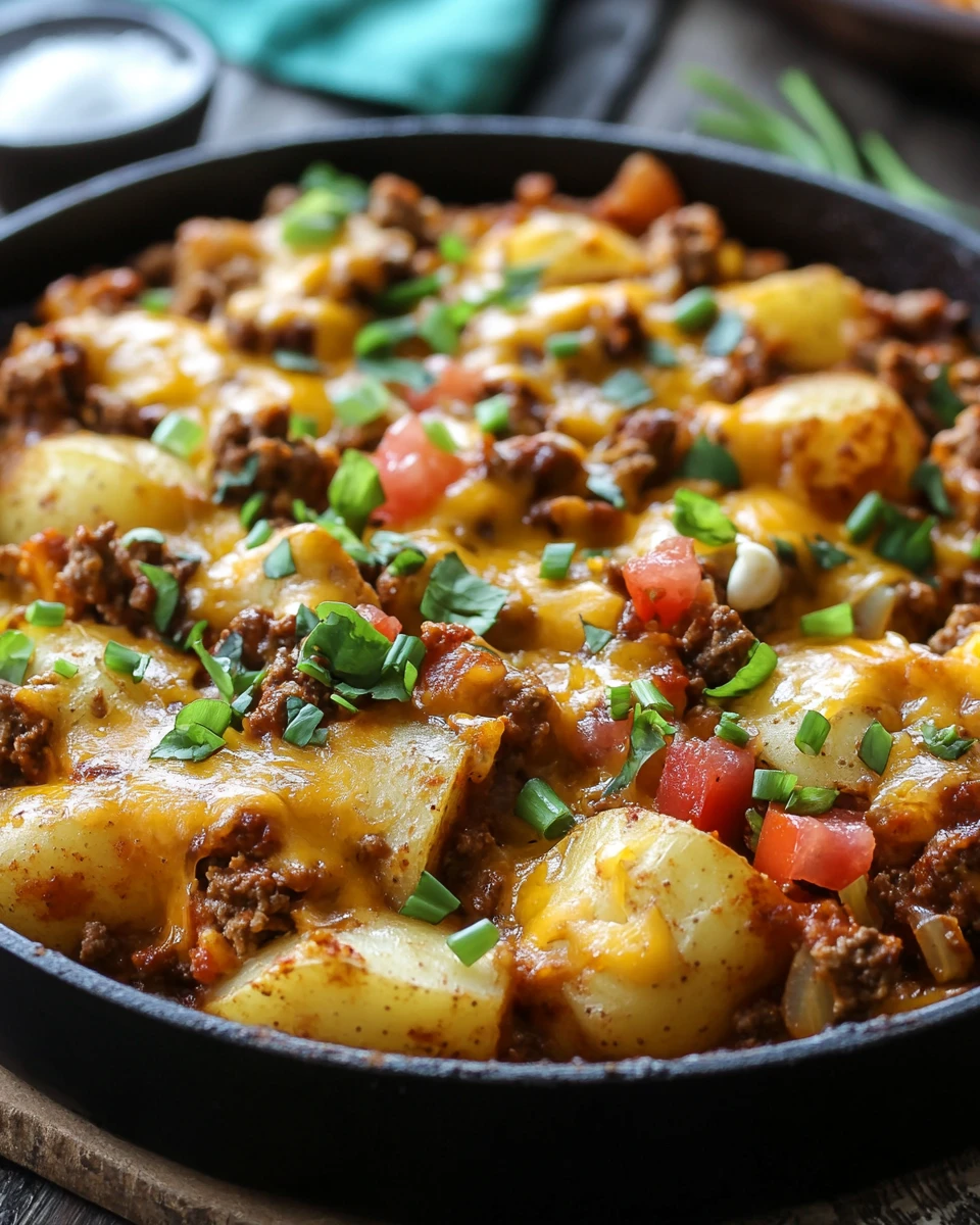 In summary, Cheesy Taco Potatoes are a quick, flavorful dish that combines the comfort of baked potatoes with the zest of taco fillings. With easy preparation and customizable options, this recipe is perfect for any occasion. Try it out, and don’t forget to share your experience in the comments below! Subscribe for more delicious recipes and cooking tips!