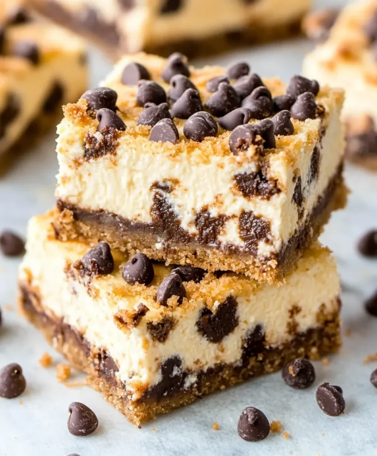 This Chocolate Chip Cheesecake Bars Recipe offers a quick, easy, and delicious way to enjoy the best of both cheesecake and chocolate chip cookie worlds. Perfect for any occasion, these bars combine creamy richness with sweet crunch in every bite. Try the recipe today, share your feedback in the comments, and subscribe for more irresistible dessert ideas!