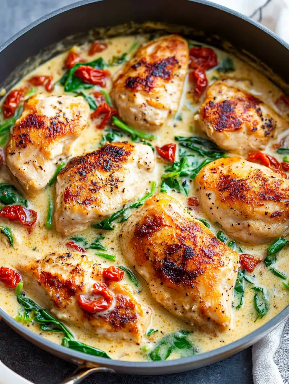 Return the chicken to the skillet, spooning the creamy sauce over the top. Let it simmer for another 2 minutes to allow the flavors to meld together.