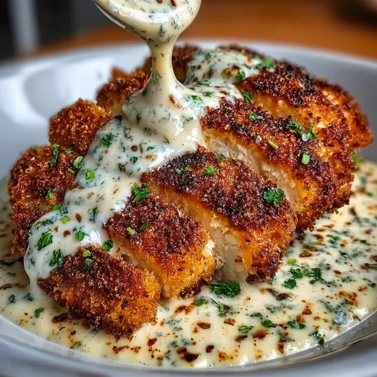 Crispy Parmesan Chicken Recipe with Dreamy Garlic Cream Sauce