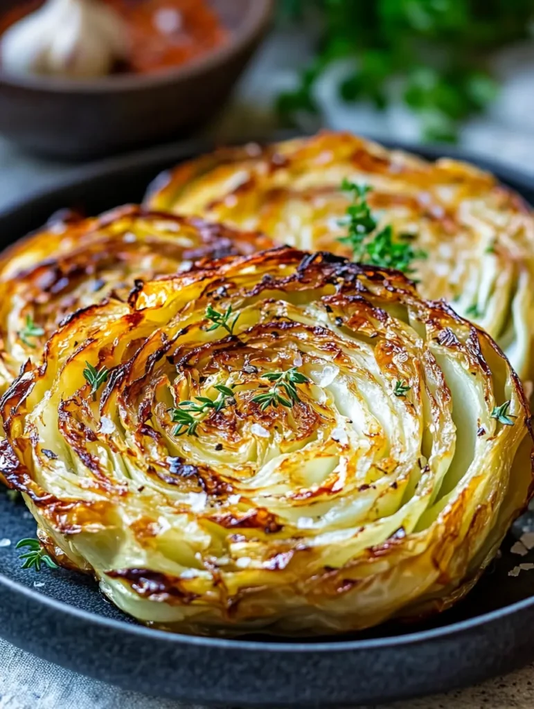 Once roasted, remove the cabbage steaks from the oven. Drizzle with any remaining garlic butter and sprinkle with fresh herbs if desired. Serve immediately and enjoy the rich flavors!