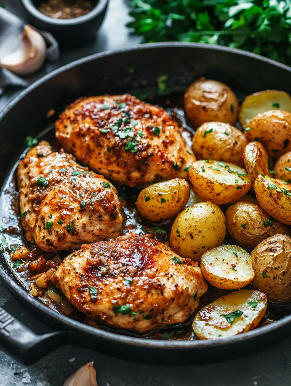 In summary, Garlic Parmesan Chicken with Potatoes is a delightful and easy recipe that combines savory flavors with wholesome ingredients. With its quick preparation and cooking time, it’s perfect for busy nights. Try this recipe today, and don’t forget to share your experience in the comments below! Subscribe to our blog for more delicious recipes and cooking tips.