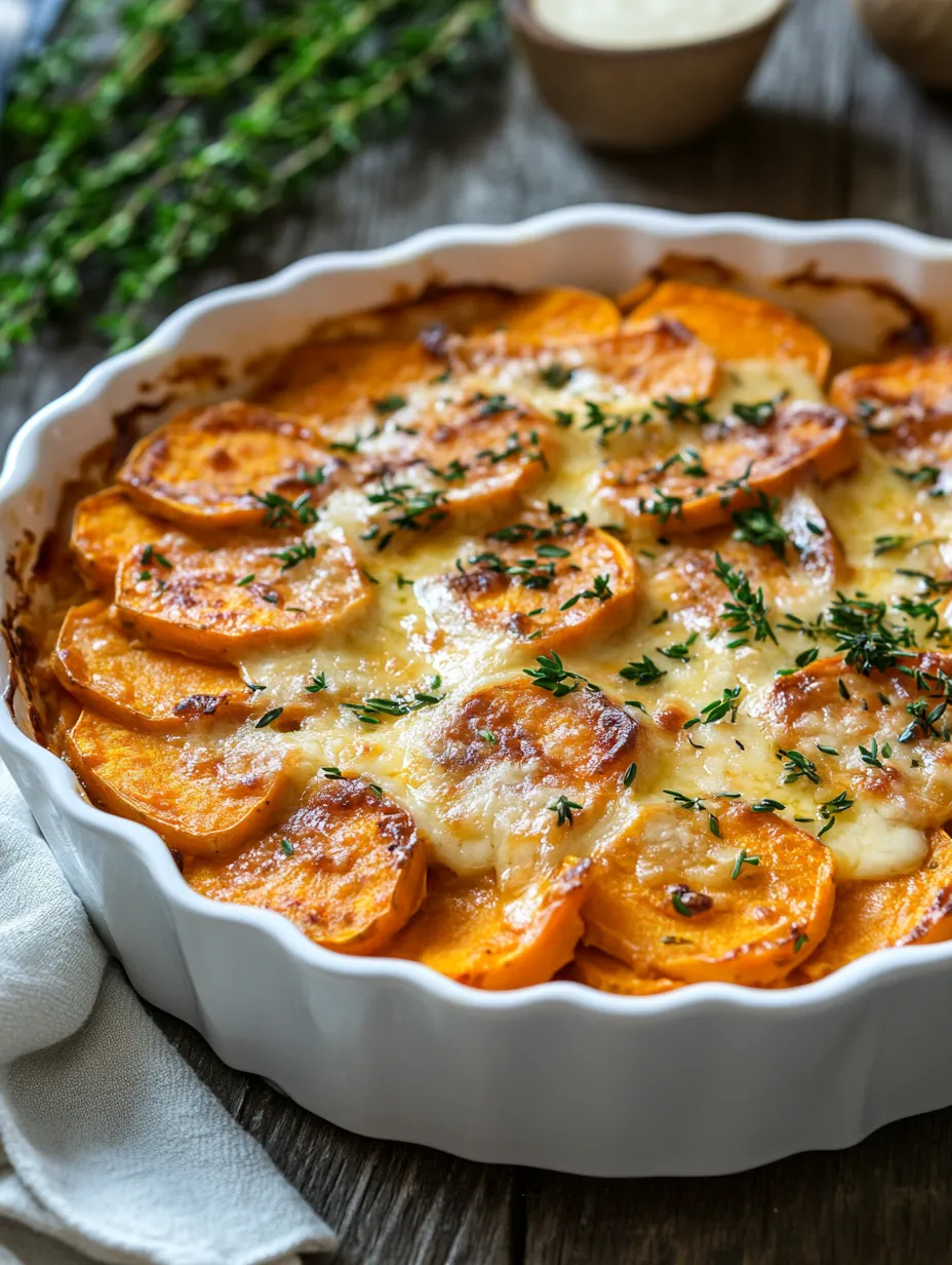 In summary, this Garlic Scalloped Sweet Potatoes Recipe offers a delicious way to enjoy a classic dish with a twist. With its creamy texture and rich flavor, it’s sure to become a favorite at your dinner table. We invite you to try this recipe, share your feedback in the comments, and subscribe for more delightful recipes and cooking tips!