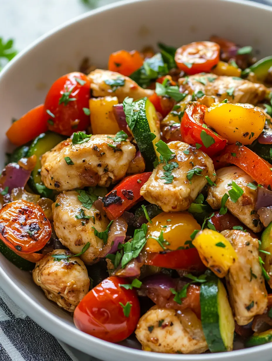 Once the chicken is cooked, add the red onion, bell peppers, zucchini, and garlic to the skillet. Stir-fry for an additional 5-7 minutes, until the vegetables are tender yet still crisp. The vibrant colors will make your dish visually appealing!