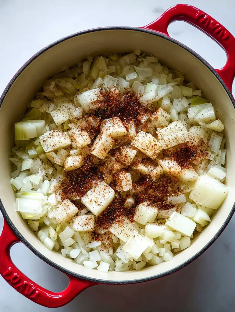 Once the chorizo is cooked, add the diced onion and minced garlic. Sauté until the onion is translucent, about 3-4 minutes. This step enhances the soup’s flavor profile through the aromatic base.
