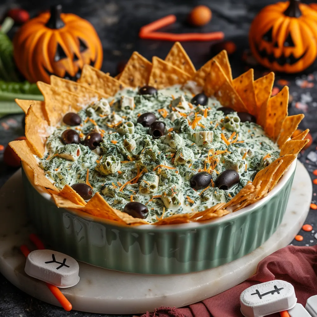 In summary, the Spinach Dip Graveyard Halloween Scene is a delightful, engaging dish that enhances any Halloween celebration. With its creamy texture and spooky presentation, it’s sure to be a crowd-pleaser. Don’t forget to try this recipe, share your feedback in the comments, and subscribe for more festive updates!