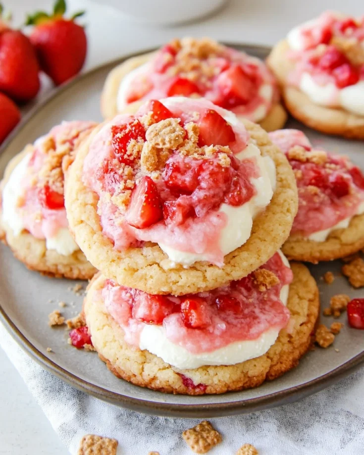 In summary, Strawberry Crunch Cheesecake Cookies are a delightful treat that combines the best of both worlds: the creamy richness of cheesecake and the satisfying crunch of cookies. With just a few simple ingredients and steps, you can create a dessert that is sure to impress. We invite you to try this recipe, share your thoughts in the comments, and subscribe for more delicious updates!
