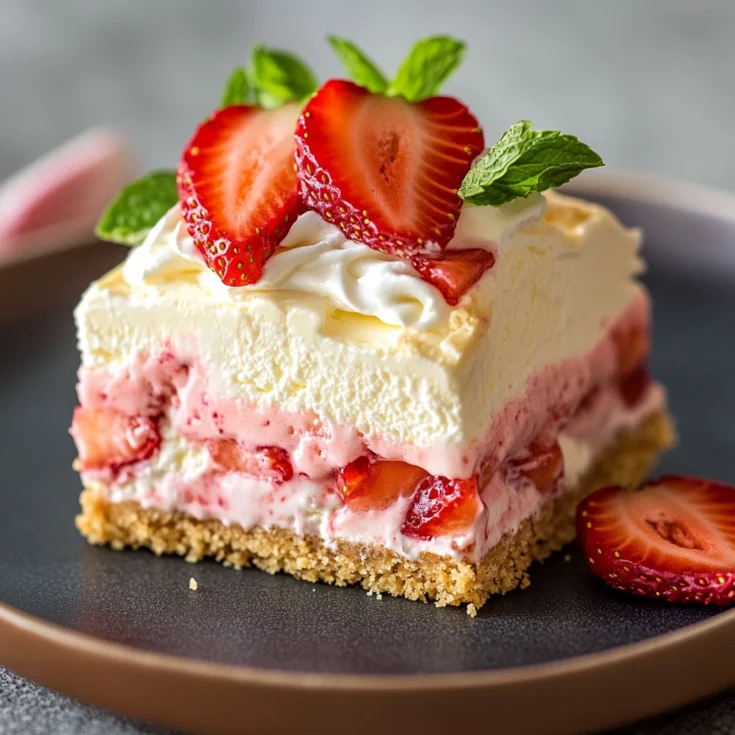 - Garnish: Top each square with additional sliced strawberries and a mint leaf for a pop of color.
