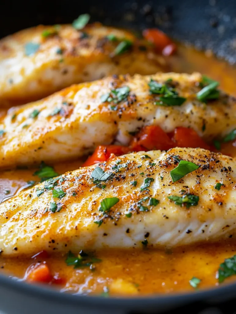 - Add the Fish: Season the tilapia fillets with salt and pepper. Gently place them in the skillet with the sauce. Cover and let cook for about 8-10 minutes, or until the fish flakes easily with a fork.